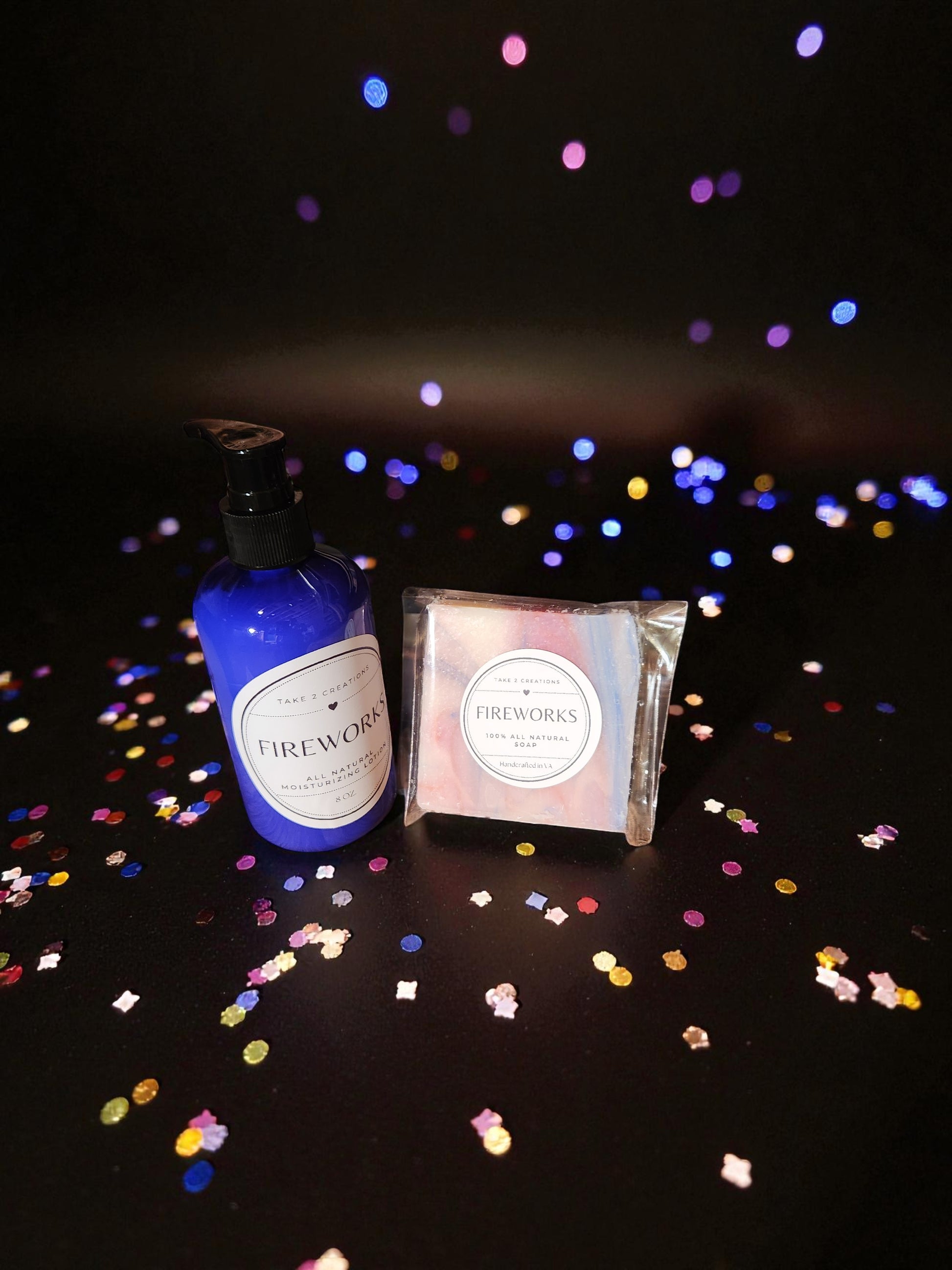 Ignite your senses with Fireworks. A dazzling blend of calming lavender, romantic jasmine, warm vanilla, and earthy patchouli creates a vibrant, captivating aroma that leaves your skin soft, fragrant, and delightfully awakened.